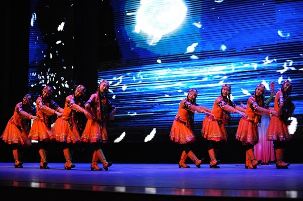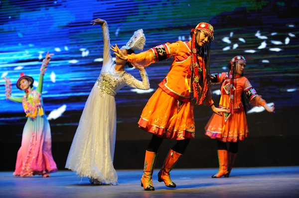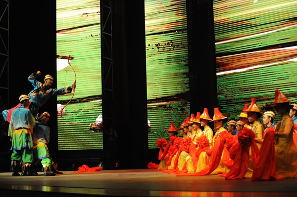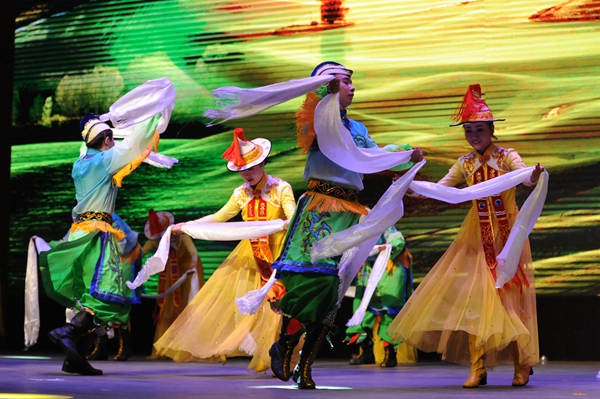6月25日晚,由教育部、文化和旅游部、财政部主办的2018年“高雅艺术进校园”河西学院大型歌舞剧《裕固风华》在兰州理工大学兰工坪校区体育馆精彩上演。该剧由《序》《东迁》《家园》《传说》《婚礼》五个篇章组成,以裕固族传统民歌、舞蹈为载体进行创作和改编,以裕固族东迁,聚居河西走廊繁衍生息的历史以及传说为主线,采用情景歌舞的形式表现了裕固族的历史变迁和民俗文化,生动地展现了裕固族人民勤劳勇敢、热爱生活、自强不息、敬畏自然、保护生态、建设美好家园的民族精神,演出得到师生的广泛好评。