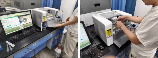 本次培训聚焦仪器核心技术与实操规范,从工作原理入手,系统拆解了液滴培养、高通量检测的技术逻辑;随后通过现场演示,细致讲解了设备开机调试、参数设置、样本加载及数据导出等全流程操作,并针对实验过程中的关键环节及日常维护要点做了重点强调。参训师生边听边记、主动提问,围绕实验设计、数据优化等实际问题与工程师展开了深入交流,切实掌握了独立、安全开展相关实验的重要技能。