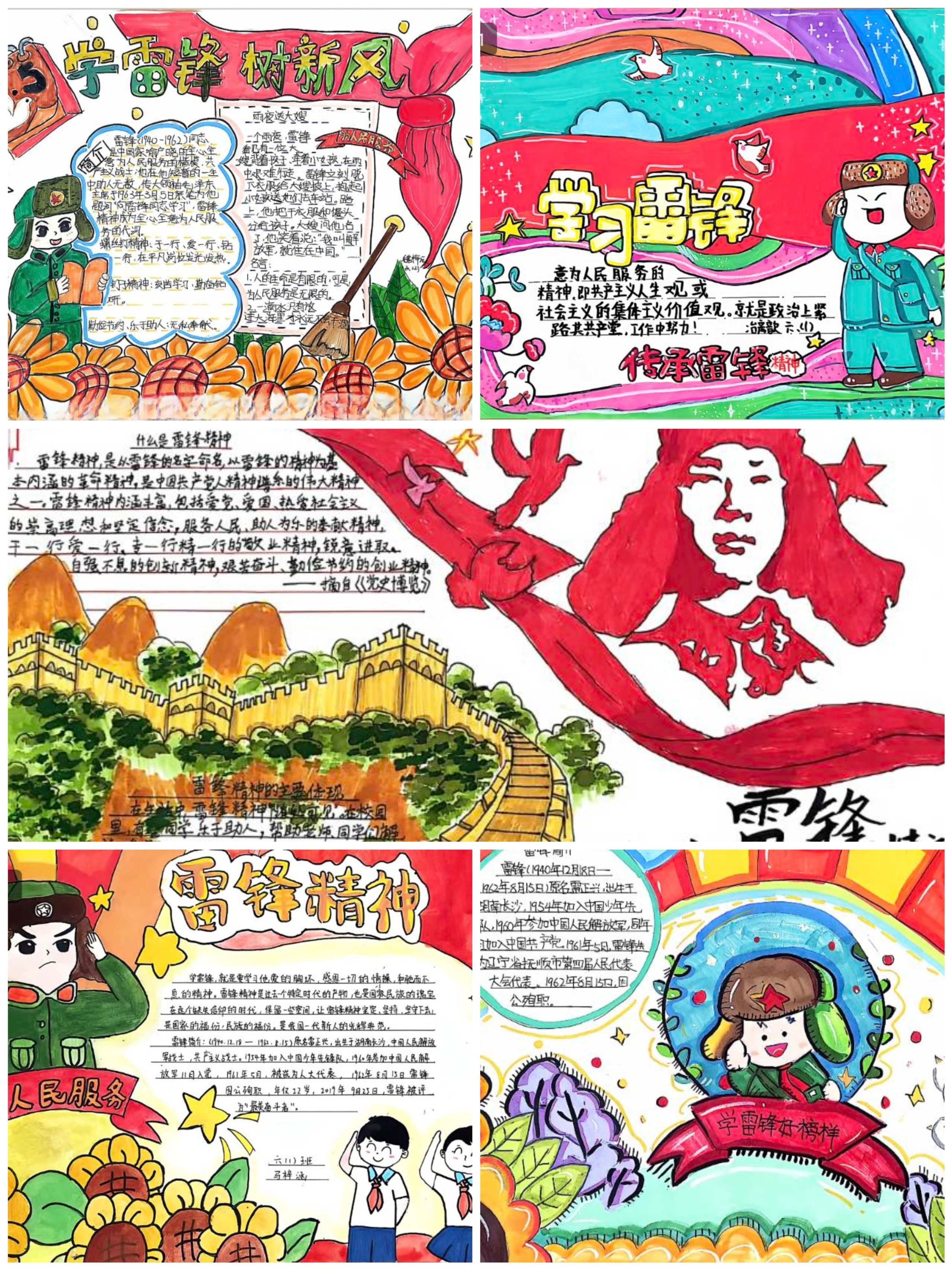 学校充分利用红领巾广播站、班级黑板报、走廊文化等宣传阵地,分享雷锋日记与故事、传唱雷锋主题歌曲,营造浓厚的学雷锋校园氛围。六、七年级学生参与“学雷锋,见行动”主题手抄报比赛,用画笔传承雷锋精神。