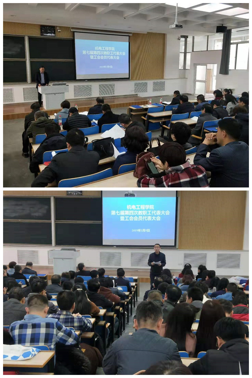2019年3月5日下午,机电学院在兰工坪校区1南502教室召开2019年教职工暨工会会员代表大会。学院全体教职工参加,会议由学院党委张君书记主持。