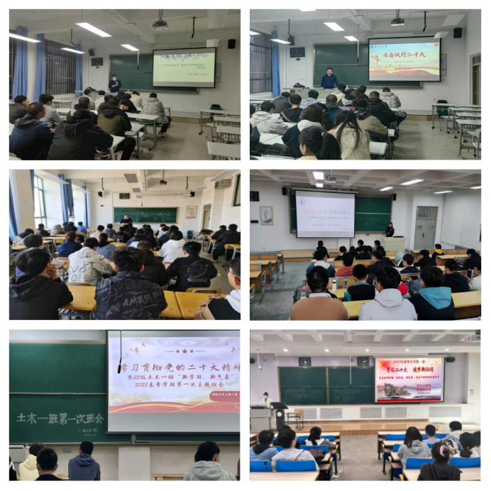 电信学院各班班主任带领班级学生认真学习习近平新时代中国特色社会主义思想、党的二十大精神相关内容,并结合新学期不同年级的重点工作召开主题班会,引导广大同学以崭新的状态开启新学期的学习生活。
