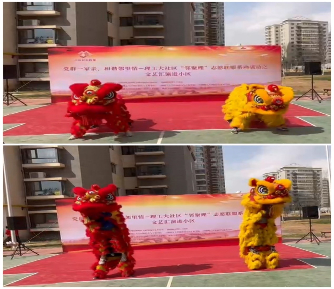为推动大学生志愿服务活动常态化,探索校地合作新模式,能源与动力工程学院团委发挥自身优势,全力配合理工大社区传统文化进社区活动。3月30日,由七里河区新时代文明实践中心办公室西湖街道理工大社区主办的,理工大社区“邻聚理”志愿联盟活动之文艺汇演进小区节目表演在国资物业兰工坪南街家园小区二十二佳园篮球场进行展演。能动学院玉川志愿者协会和舞狮协会全力配合传统文化进社区活动。