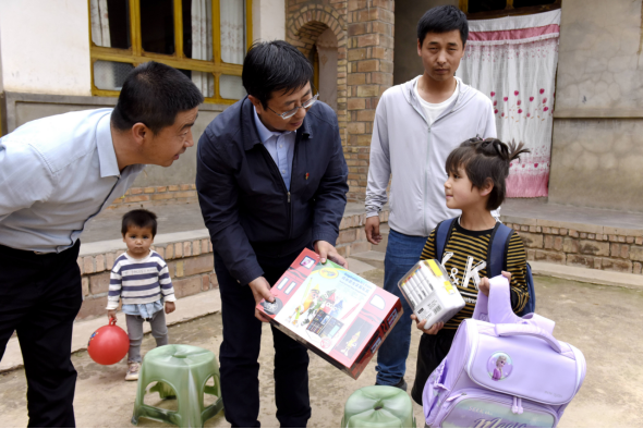 仪式结束后,学校组织开展结对关爱孤儿、困难重度残疾人和特困家庭入户行动。夏天东来到结对关爱孤儿家中,为结对的孩子赠送书包、学习文具等用品,与孩子面对面进行了交流谈心,详细了解了孩子的学习生活情况,他鼓励孩子们树立远大志向、勤于学习思考,练就建设祖国、建设家乡的过硬本领。要求结对干部要倾情倾力当好孤儿、困难重度残疾人和特困家庭的“爱心爸爸”“爱心妈妈”“爱心家人”,用实际行动践行“爱心甘肃”工程建设。夏天东还与帮扶的镇、村干部、驻村干部进行了深入交流,要求学校驻村干部聚焦帮扶村群众美好生活需要,因地制宜、实事求是破解帮扶工作中的各种难题,切实为帮扶村群众办实事好事,全力服务乡村振兴高质量发展。