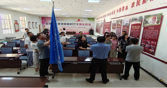走进乡村,体验新农村文明建设。实践团队在金昌市双湾镇新粮地村走访参观,双湾镇副镇长鲜舜文为实践营的营员们做讲解。该村自2019年以来,探索设立了“孝善基金”,创新开展“孝善宴”“婆媳互夸会”“暮年老人集体生日会“等活动,让“孝敬父母、尊老助老”的孝善风尚蔚然成风。先后打造了“乡村记忆馆”“村民协商议事厅”“村民道德银行”,建立“失德村民约谈制度”等新时代文明实践活动。先后荣获“甘肃省新农村建设示范村”“甘肃省级千村引智示范村”“省级卫生村”以及“省级文明村”等荣誉。在参观走访中,昂扬奋进的气息扑面而来,大家深刻感受到加快发展乡村产业、加强社会主义精神文明建设是乡村振兴的重要一环。