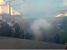 第二阶段进行人员疏散演练,在南村地下综合超市模拟火灾现场,组织开展疏散逃生演练,大家低头弯腰,用袖口、湿巾等捂着口鼻迅速有序地按照指定路线应急疏散。
