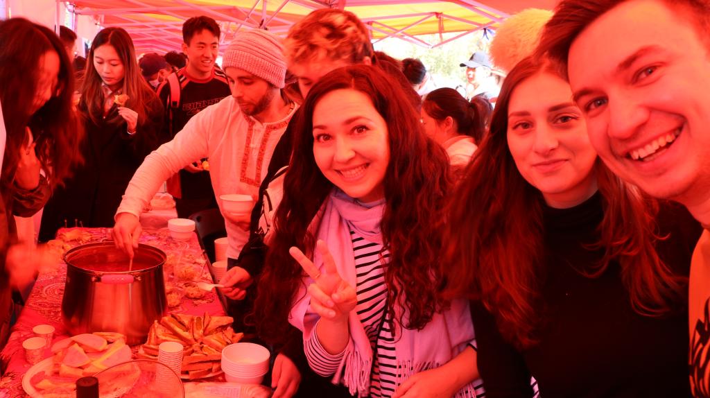 开幕式后,“美食嘉年华”版块活动随即开始,共设置36个展位,其中国际学生展位35个、中国学生展位1个。中国学生展位由学校团委、文学院指导,学生社团国学会承办出展。通过展示各国独特的饮食、服饰、音乐、舞蹈等民俗文化特色,搭建起中外学生交流、互动的国际化舞台。美食展示的同时,中外学生纷纷参与到现场即兴表演和互动游戏环节,中外学生在品尝美食的同时,欣赏起各国特色鲜明的音乐、舞蹈,现场氛围热烈,为师生带来了一场丰富多彩、独具特色的视听盛宴。