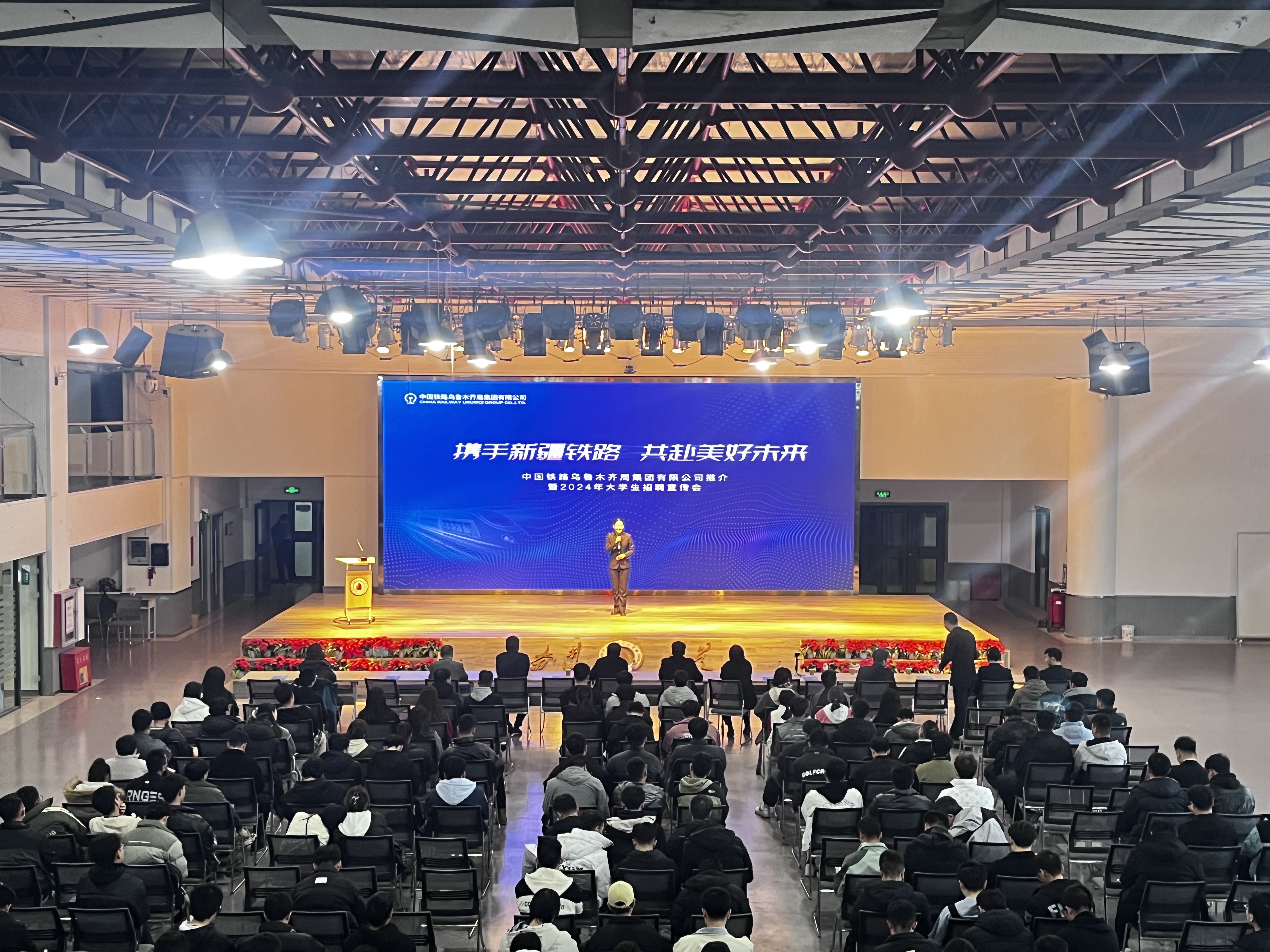 学校学生就业指导服务中心负责人致辞,对中国铁路乌鲁木齐局一行莅临学校招聘毕业生表示热烈欢迎。他表示,乌鲁木齐枢纽被纳入全国路网15个重点枢纽之一,显现了乌鲁木齐铁路局能源通道在全国路网中的重要战略地位。这为大量优秀毕业生提供了施展才华的广阔天地。此次,乌鲁木齐局来校宣讲受到广大毕业生同学的高度关注。他希望以此次招聘会为契机,增进学校对中国铁路乌鲁木齐局集团有限公司人才需求的进一步了解,特别是在人才培养和学生就业方面拓展合作方式,与乌鲁木齐局集团建立人才合作交流的常态化机制。学校希望广大毕业生同学紧紧抓住校园招聘的宝贵机会,积极应聘,实现尽早就业、充分就业、高质量就业。