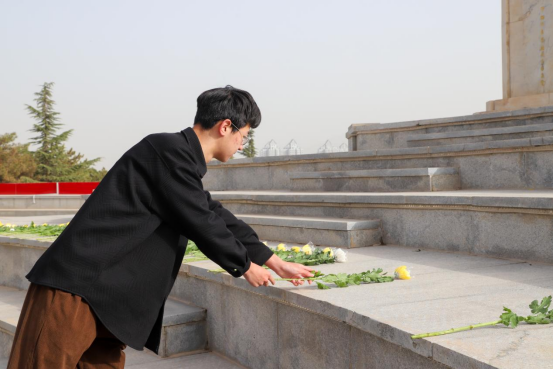 学生代表王金成向烈士献词,表达了对烈士沉痛的哀悼和深切的思念,并宣读倡议,号召同学们瞻仰英雄,缅怀烈士,告慰先烈英灵,争做听党话、跟党走的新时代好青年。