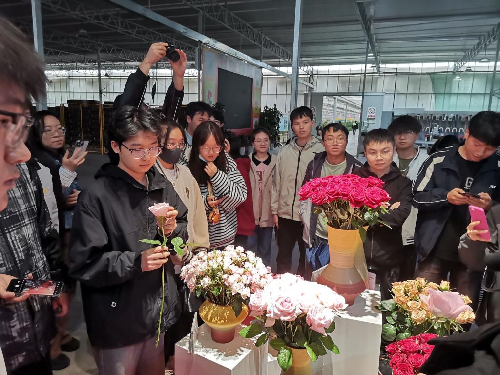 在兰州新区现代农业示范园4号智能温室,工作人员介绍了园区花卉产业情况,带领同学们近距离观摩鲜花生长情况,详细讲解鲜花的品种、栽培期及生长要求等知识。同学们实地感受了在智慧科技的加持下的特色农业产业化发展的新模式。