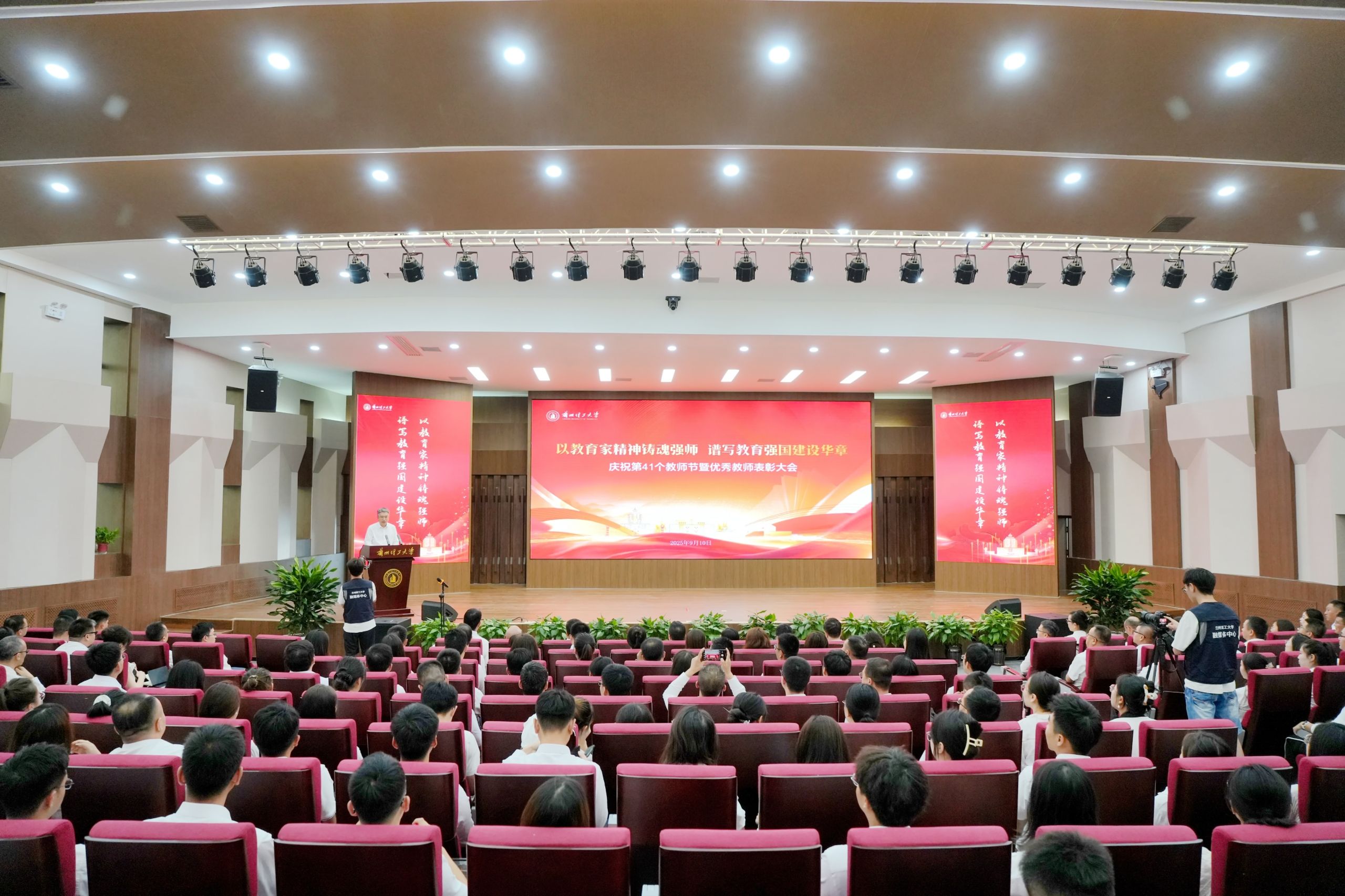 9月10日上午,第41个教师节到来之际,雷竞技qg庆祝第41个教师节暨优秀教师表彰大会在兰工坪学术交流中心二楼报告厅隆重举行。大会以“以教育家精神铸魂强师,谱写教育强国建设华章”为主题,向全校教师致以节日的问候与祝福,表彰先进典型,凝聚育人力量。全体校领导出席庆祝大会,校属单位党政负责人、优秀教师代表、新入职教职工和学生代表共300余人参加大会。党委书记赵立香讲话,党委副书记、校长冀宏主持。