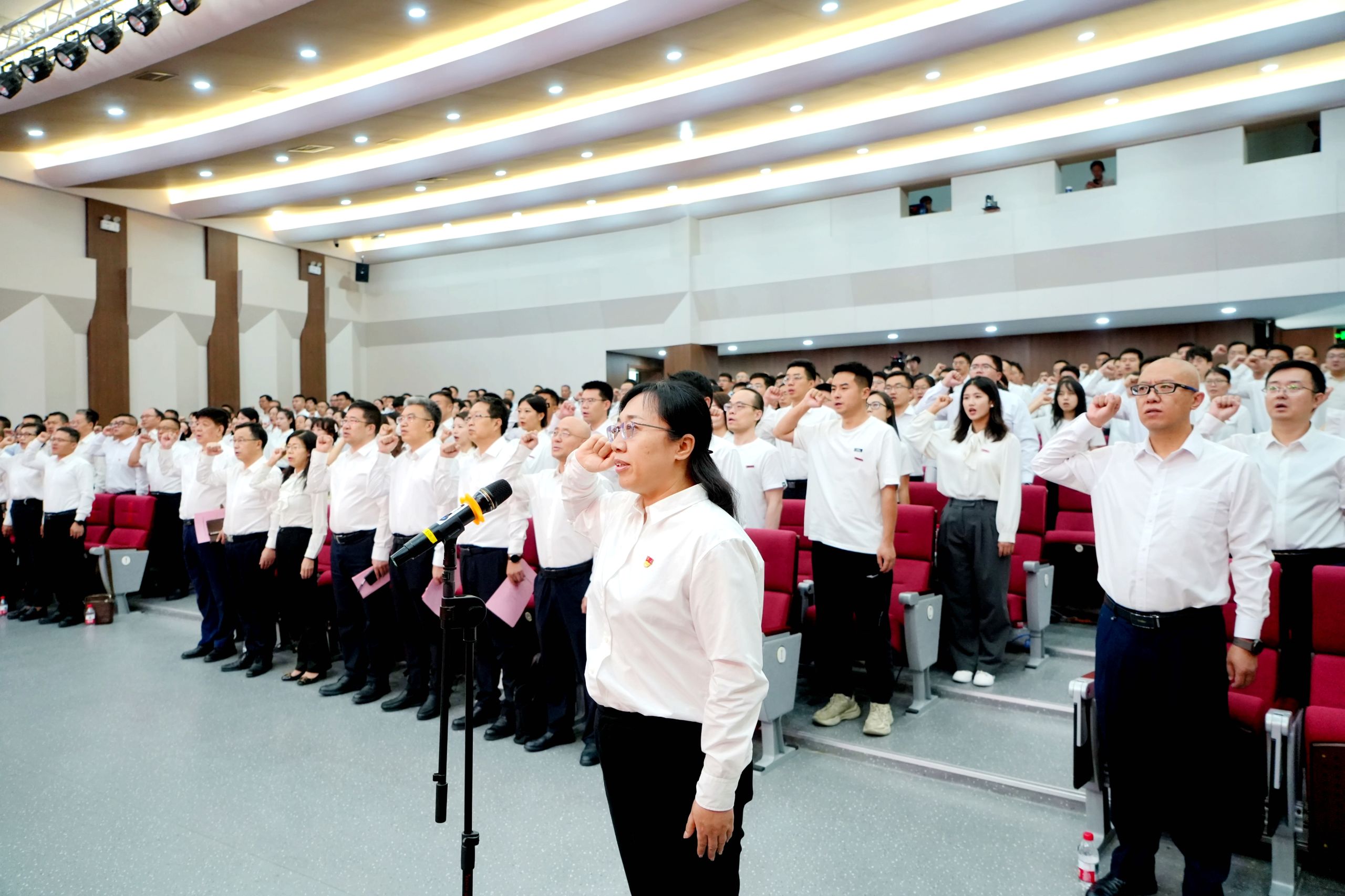 大会在雄壮的国歌中拉开帷幕。新入职教职工在“甘肃省园丁奖”获得者、材料科学与工程学院南雪丽教授带领下,高举右拳、庄严宣誓,用铿锵有力的誓言表达了投身教育事业、坚守育人初心的坚定决心。