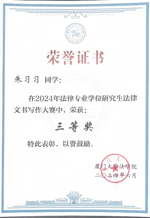 抓培养过程,自2020年起,实施学位论文预开题、预答辩,强化集体指导,抓早学位论文质量关;强化、量化专业学位课堂教学改革及培养过程要求,抓实法律专业学位研究生规模化培养要求下的潜在问题。研究生在全国法律文书大赛中斩获三等奖,取得标志性成果。